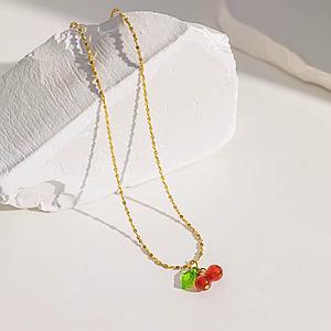 Añade un toque de dulzura y estilo a tu colección de joyas con estos encantadores aretes de cereza. Confeccionados con un acabado dorado brillante, estos aretes presentan dos cerezas de color rojo vibrante y una elegante hoja adornada con un deslumbrante cristal verde esmeralda. El diseño detallado y los pequeños cristales incrustados en la parte superior añaden un toque de sofisticación y brillo.